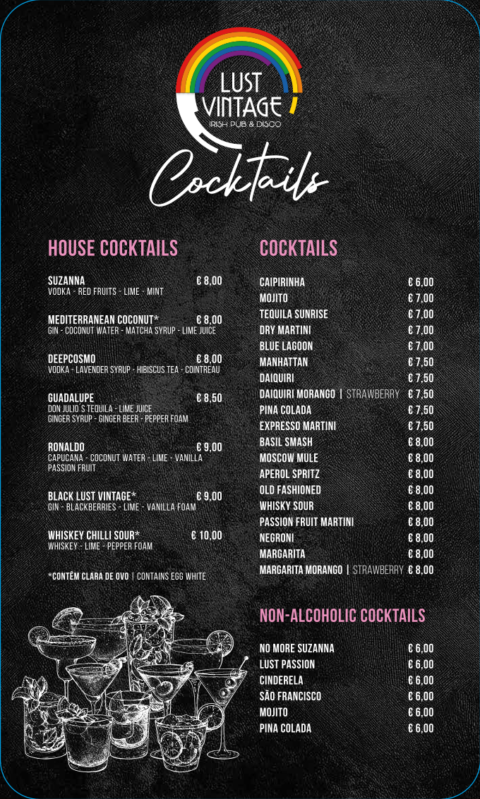 O Lust Vintage um espaço LGBTQIA+, localizado no Funchal, é um lugar de destaque na vida noturna da Ilha da Madeira. Neste clube, as portas estão sempre abertas à estética e sonoridade das décadas de 70, 80 e 90, POP e Comercial. A atmosfera do espaço é descontraída e sempre animada. A decoração cuidadosamente escolhida contribui para trazer ao bar o autêntico espírito vintage que faz parte da sua essência. Sem dúvida, é uma opção a considerar na vida noturna do Funchal, tanto para os nostálgicos que desejam reviver os velhos tempos, como para aqueles que desejam mergulhar no espírito de uma época tão marcante como essa.